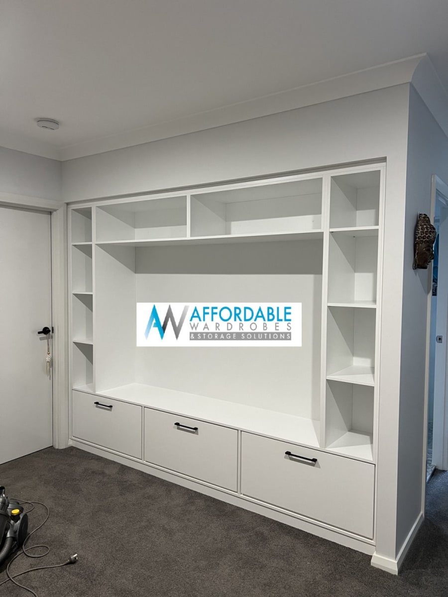We don’t just do wardrobes! Affordable Wardrobes also designs practical storage for every room in your home, from entertainment units to mudrooms, bookshelves, and office cabinetry.